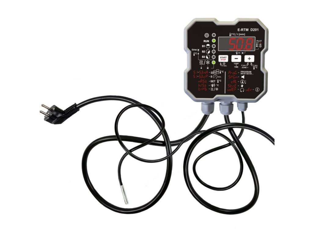 Sada obsahuje náš nerezový generátor kouře Heimdall + naše topná spirála 2kw s nerezovým deflektorem + náš programovatelný termostat - termoregulátor E-RTM D201)