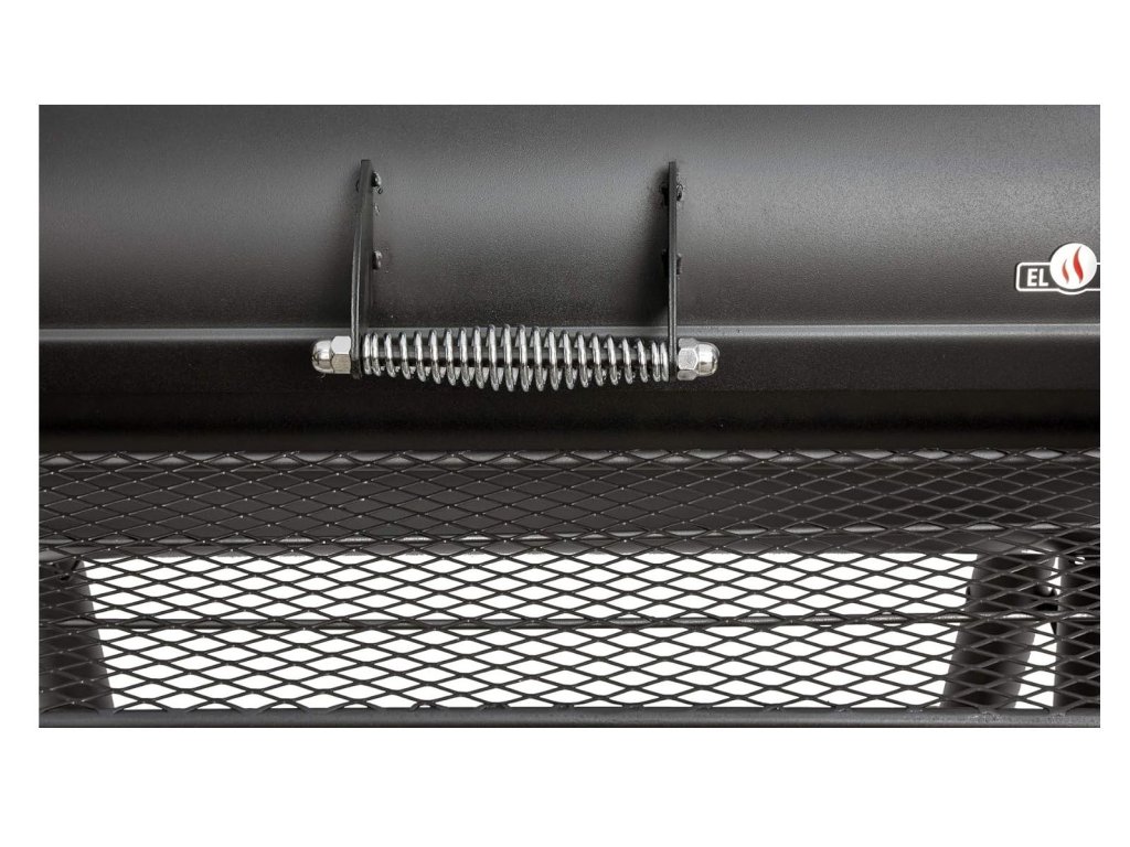 Buffalo has a side loading and two chambers with a cast iron grate. In both chambers, you can light a fire and use it as a classic grill, where food is prepared over hot coals. The chambers have a lid with a handle to shorten the grilling time and maintain the internal temperature. The main chamber has a chimney with a closable flap and an integrated thermometer, which allows perfect control of the preparation process.