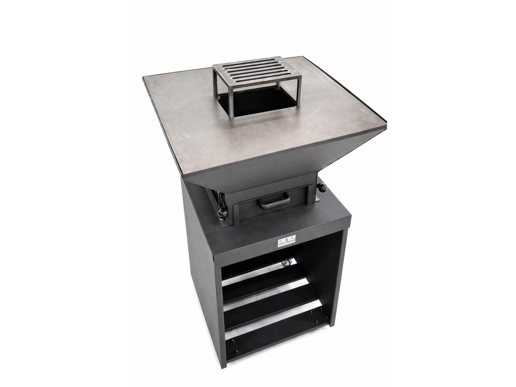 Moderní design z něj dělá výrazný prvek každé zahrady a přináší jedinečný zážitek z grilování na otevřeném ohni. Masivní konstrukce ze silného plechu zajišťuje stabilitu a dlouhou životnost, zatímco ocelová deska skvěle drží teplo pro rovnoměrnou přípravu.