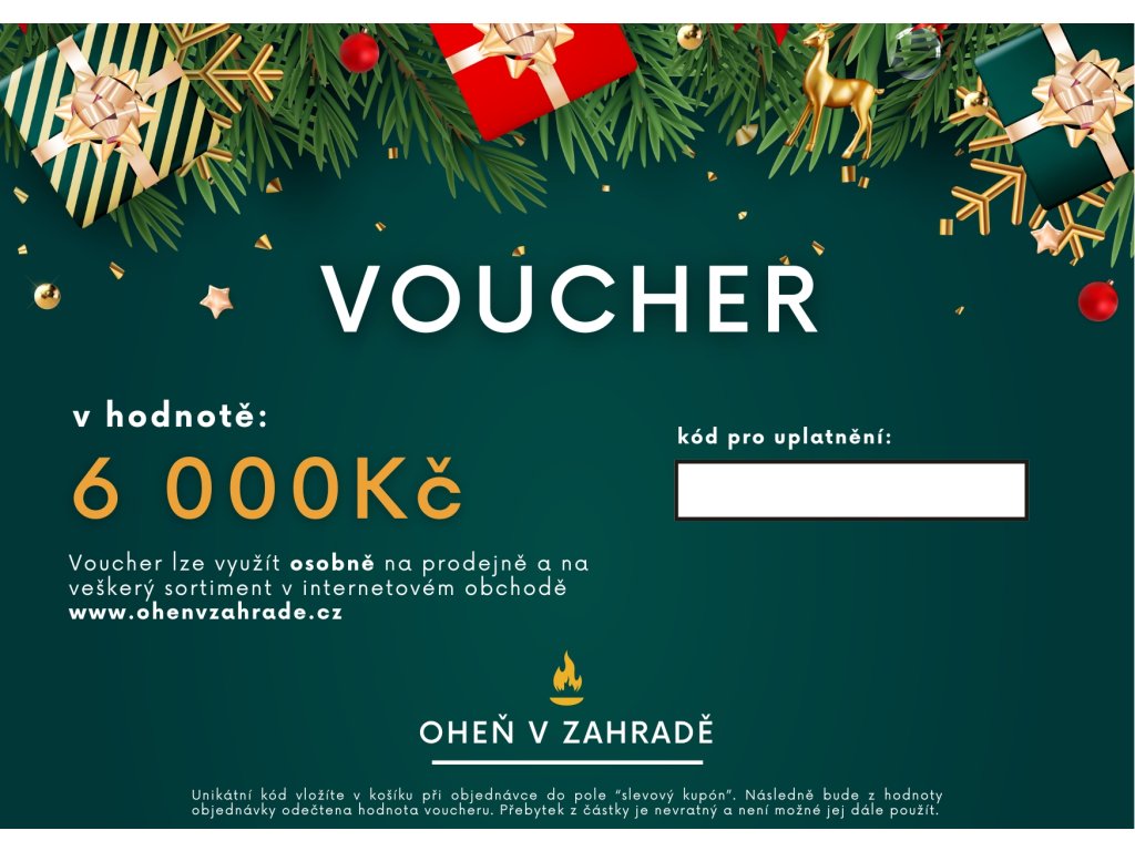 A megrendelést követően a vouchert elektronikusan kapja meg a megrendelésben megadott e-mail címére. A vouchert könnyen beválthatja webáruházunkban a ohenvzahrade.cz oldalon, valamint a Rybářská 89/44, Opava címen található üzletünkben (bejárat az OPTYS területére a Mařádkova utcával szemben).