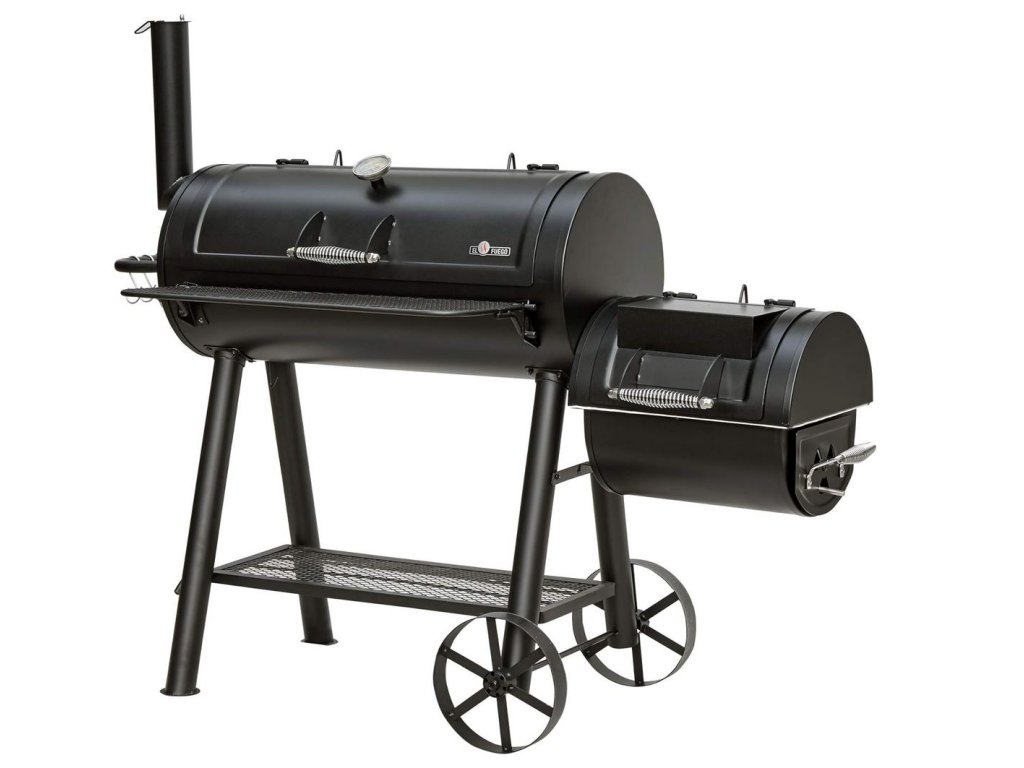 Bemutatjuk a Buffalo oldalsó tüzelésű grillt füstölővel (smoker), amely klasszikus grillként is használható az ételek közvetett hővel történő elkészítéséhez, vagy füstölőként, ahol a lassú és kíméletes sütés alacsony hőmérsékleten vagy 100 °C alatti füstölés során az élelmiszerek megőrzik természetes lédússágukat.