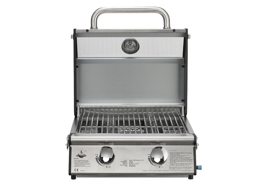 Az El Fuego® „Jesolo” gázgrill ideális választás azok számára, akik kompakt, mégis nagy teljesítményű és egyszerűen kezelhető grillt keresnek. A két rozsdamentes acél égőnek köszönhetően, amelyek összteljesítménye 6 kW, valamint a rozsdamentes acél rostélynak köszönhetően biztosítja a hús és a zöldségek egyenletes átsülését. A fedélben lévő üvegablak lehetővé teszi a grillezési folyamat nyomon követését anélkül, hogy azt fel kellene nyitni, minimalizálva ezzel a hőveszteséget.