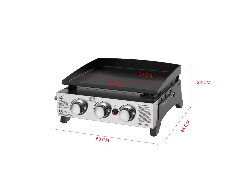 - Grillezőfelület: 45 × 34 cm (zománcozott öntöttvas lap)