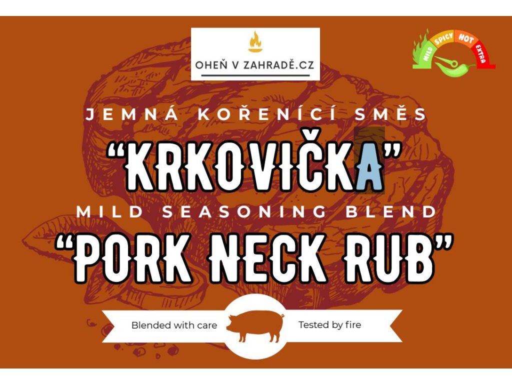 Naše vlastní jemná kořenící směs "KRKOVIČKA" ("PORK NECK RUB") – poctivě vyvinutá, testovaná a doladěná na grilech El Fuego a ohništích Oheň v zahradě.
