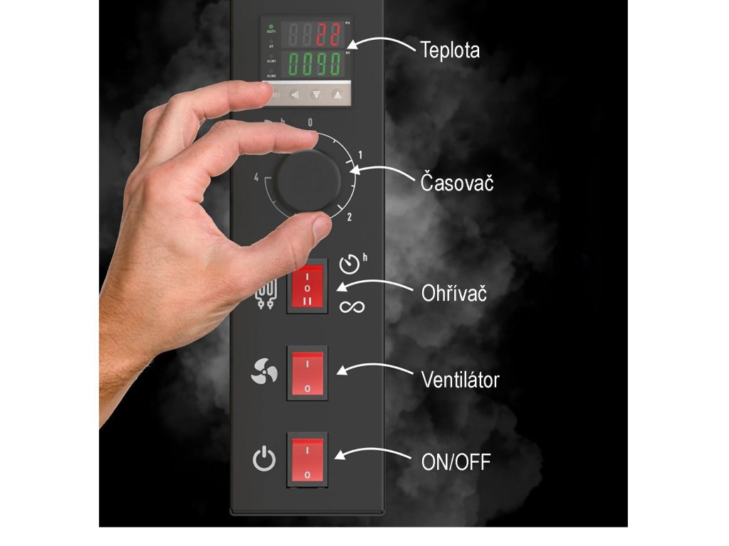 Umožňuje přesné ovládání teploty, času i ventilátoru. Maximální kontrola nad celým procesem a stabilní výsledky.