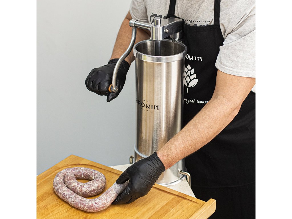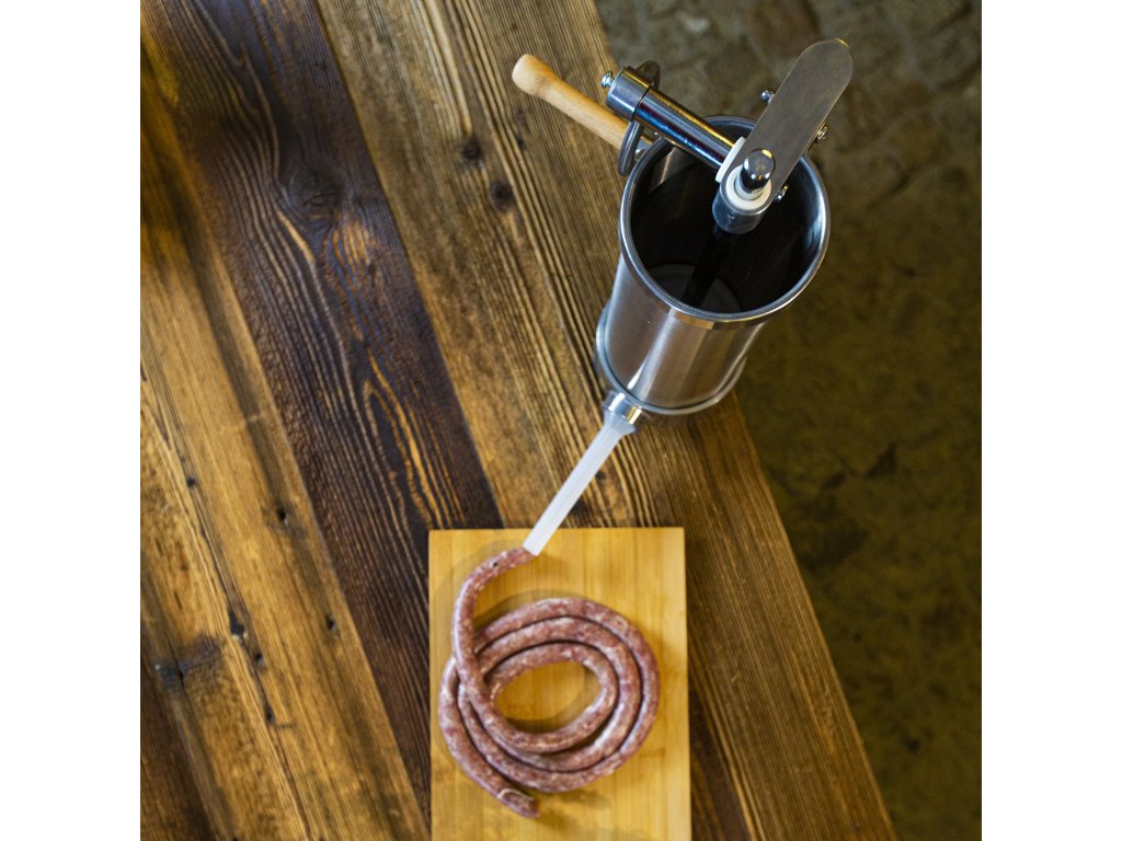 Snívate o domácich klobásach bez konzervačných látok a zbytočných chemických prísad? Náš vertikálny plniaci stroj je nepostrádateľným zariadením, ktoré sa vám bude určite hodiť pri výrobe domácich klobás. Vďaka vysokokvalitnej nehrdzavejúcej oceli, z ktorej je plniaci valec vyrobený, ako aj dômyselnému dizajnu a špeciálne navrhnutému piestu odolnému voči ohybu. Piest je vybavený aj odvzdušňovacím otvorom, ktorý umožňuje vytláčanie vzduchu spod piestu, nie do čreva. V sade s naším bumping strojom nájdete 6 nástavcov rôznych veľkostí, ktoré vám umožnia vyrábať domáce výrobky s priemerom od 14 mm do 35 mm.