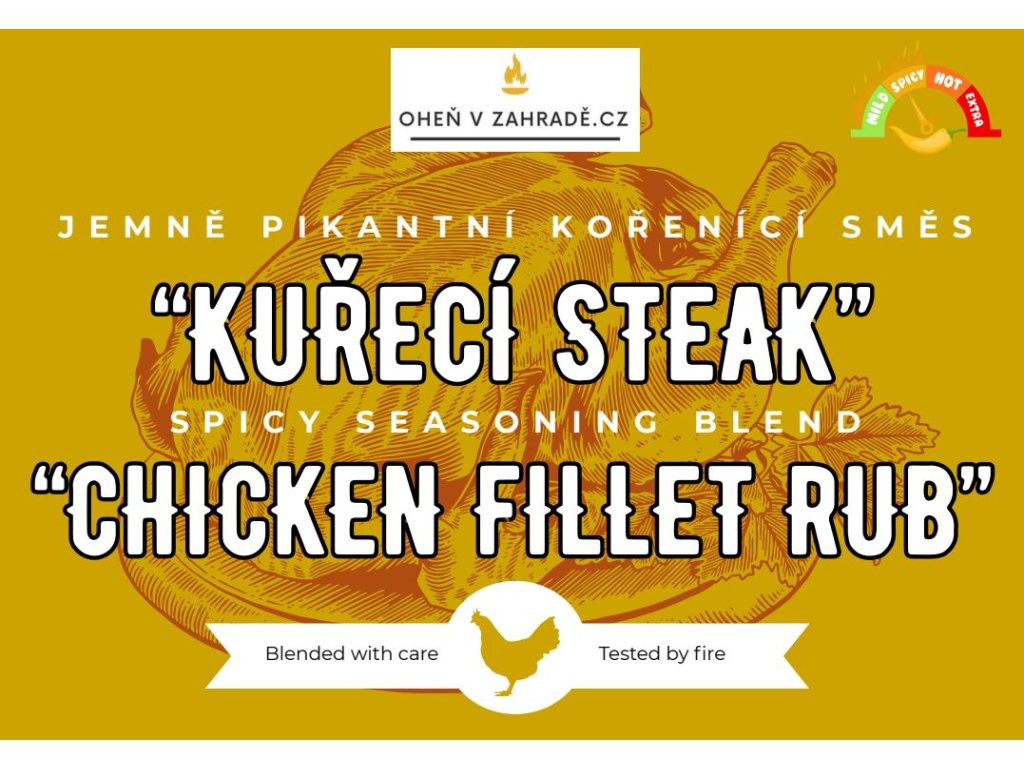 Naše autorská jemně pikantní kořenící směs KUŘECÍ STEAK (CHICKEN FILLET RUB) z dílny Oheň v zahradě.